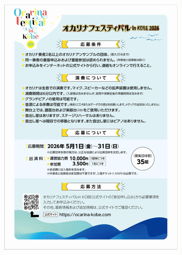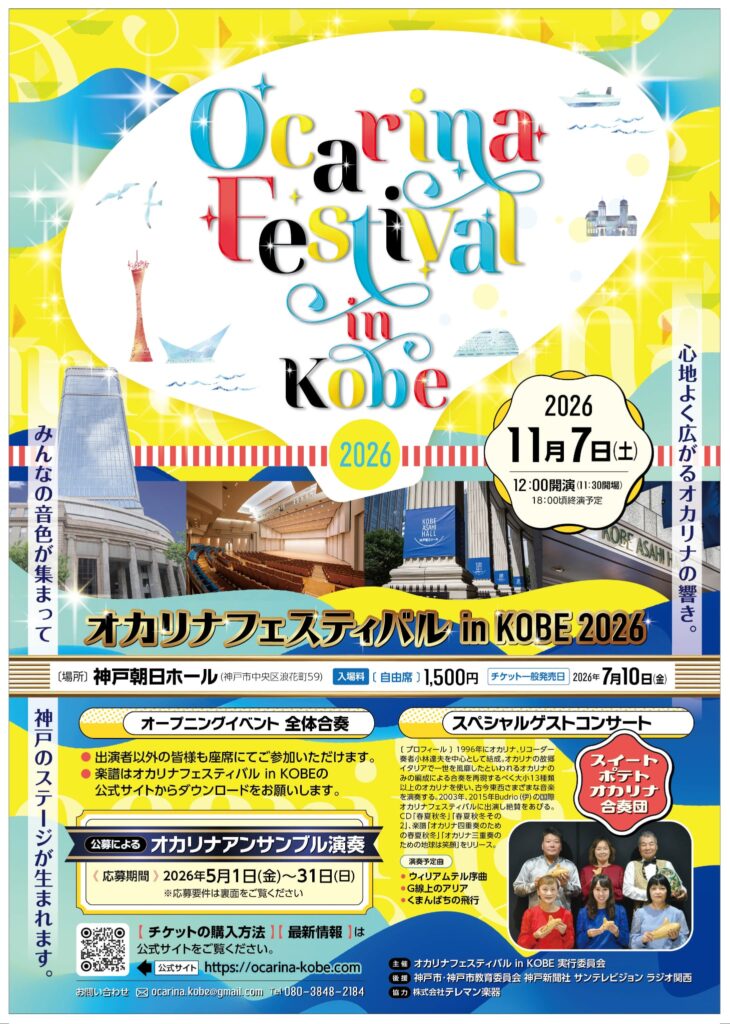 2026年11月7日に開催される「オカリナフェスティバル in KOBE」の公式サイトです。